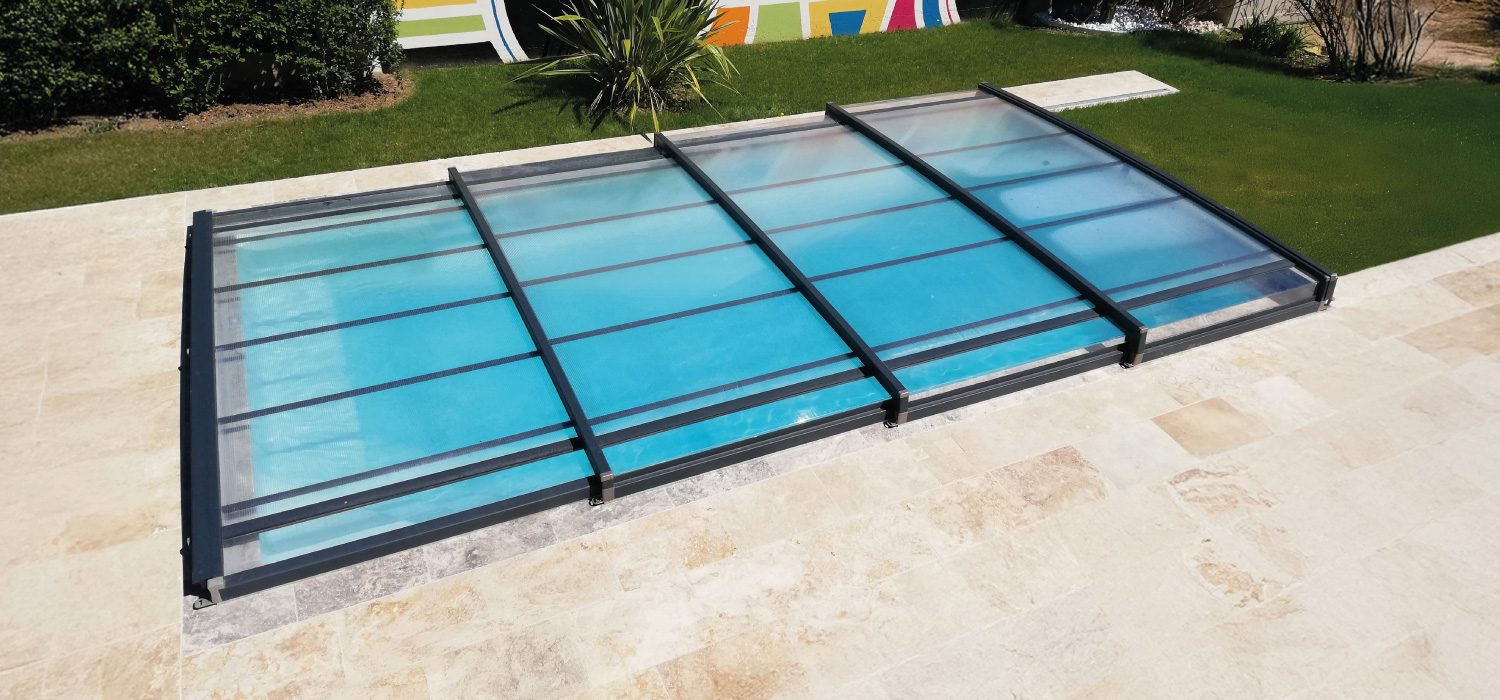 La copertura piatta prevede l’impilamento manuale dei moduli alla fine della piscina, mentre la copertura ultra-bassa, grazie al suo sistema di scorrimento sovrapposto della struttura, si apre e si chiude facilmente fino all’estremità del bacino.